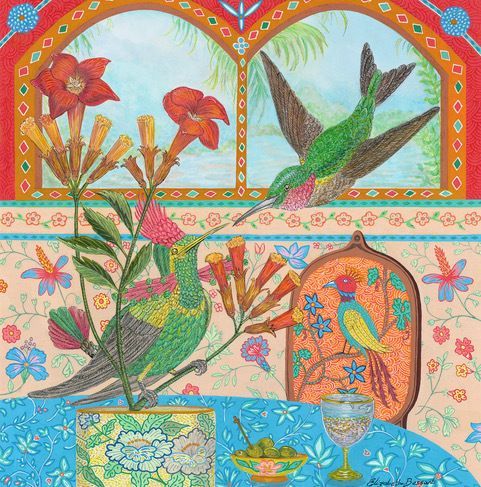 Elizabeth's meticulous process begins with in-depth research. She then sketches a composition, refining it until she's completely satisfied. To create the soft backgrounds, she employs delicate ink washes. The intricate details are then brought to life with acrylic paint and fine-line pens. To add a touch of opulence, she highlights each painting with metallic gold or silver.